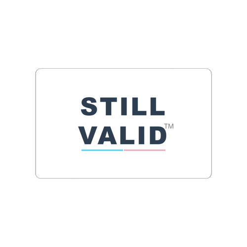 Featuring the STILL VALID™ logo with a subtle trans pride accent, this design was created to feel grounding rather than performative — something you can reach for on ordinary days, not just statement moments.